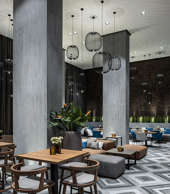 阿爾巴沙萬怡酒店于2018年10月開業(yè),是阿拉伯聯(lián)合酋長國的一家酒店VI設(shè)計公司。酒店的內(nèi)部裝飾深深植根于意大利風(fēng)格,裝飾材料,高貴的木材,精美的大理石和精致的細節(jié)展現(xiàn)出嚴(yán)謹而現(xiàn)代的主題風(fēng)格。全日制餐廳位于大廳旁邊,由金屬條而不是墻壁隔開,旨在鼓勵人們在兩個空間之間自由流動。繪制假天花板和地板的線也標(biāo)記了這種流動。一樓還設(shè)有雪茄吧餐廳,不僅是用餐的地方,而且還得益于經(jīng)過深思熟慮的布局,定制的家具和諸如混凝土,雪茄。臥室配有定制設(shè)計的家具,精致的細節(jié)和精致的裝飾讓您住得舒適。在屋頂樓層,客人可以享受水療護理,也可以參加設(shè)備齊全的健身中心。酒店以帶室外游泳池和豪華酒吧的屋頂為中心。酒店為客戶提供了在配備先進設(shè)備的會議室舉辦活動的可能性.
