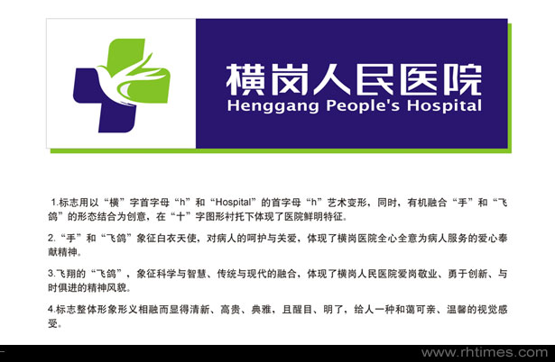 “手”和“飛鴿”象征白衣天使,對病人的呵護與關(guān)愛,體現(xiàn)了橫崗醫(yī)院全心全意為病人服務的愛心奉獻精神。